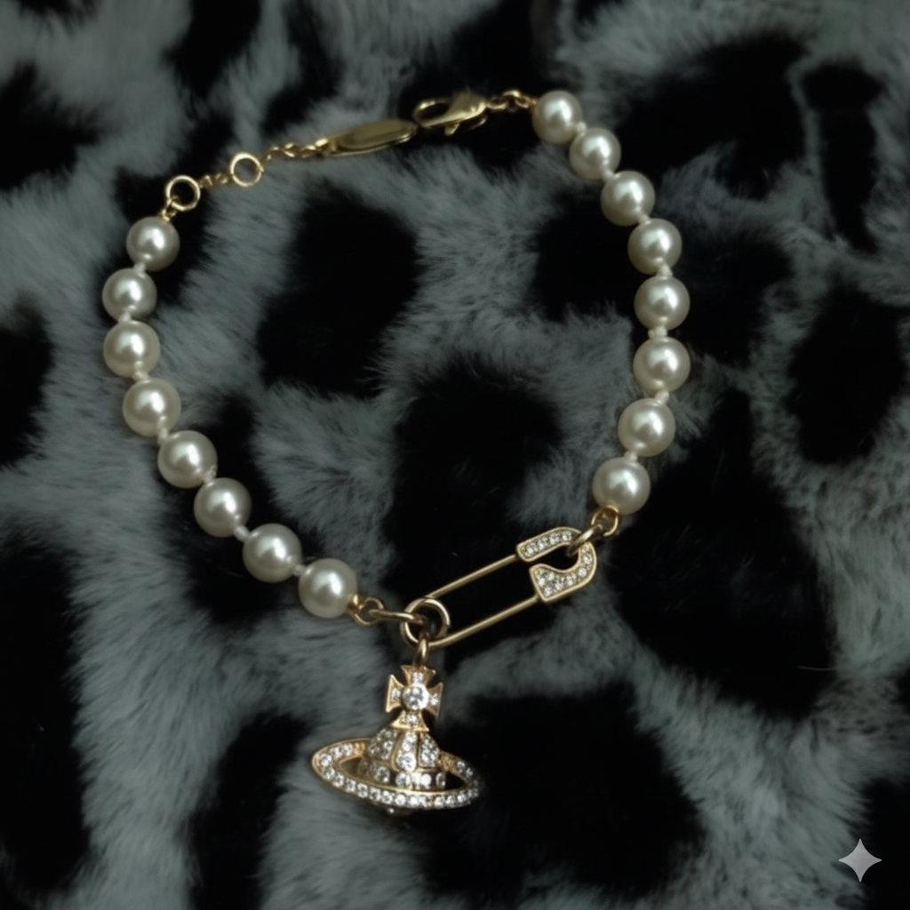 Pearl Necklace, Saturn Paperclip, Pearl Pendant, Pearl Jewelry
