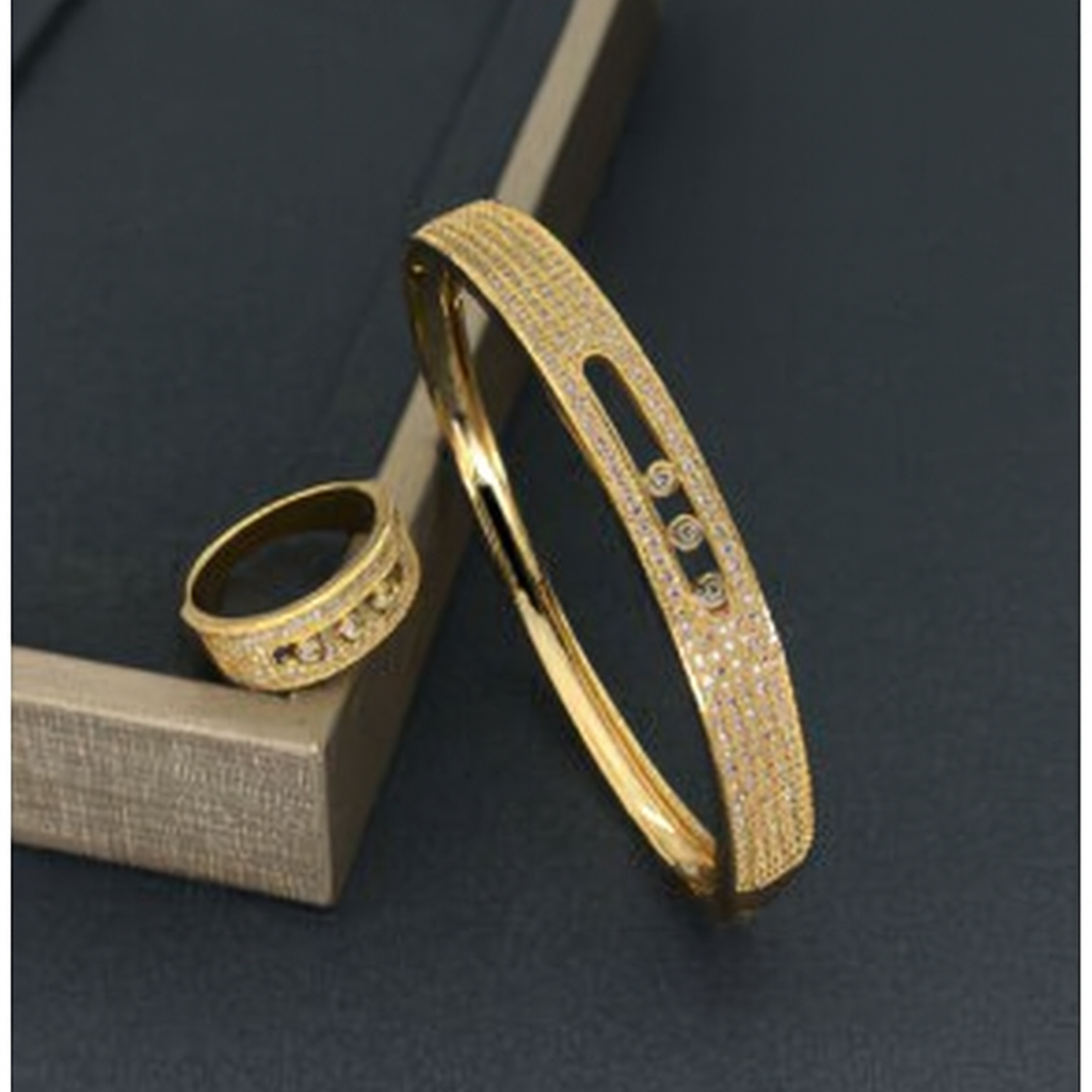 Round Cubic Zirconia Bracelet & Ring Set — Elegant Wedding Jewelry for Women